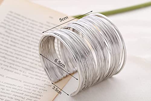 Joeyan Braccialetto Multistrato Aperto Largo Argento Donne