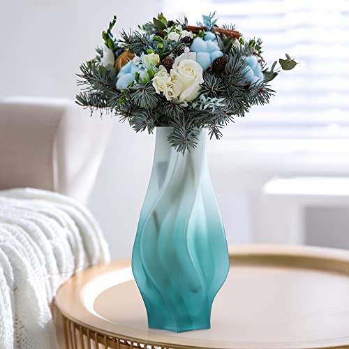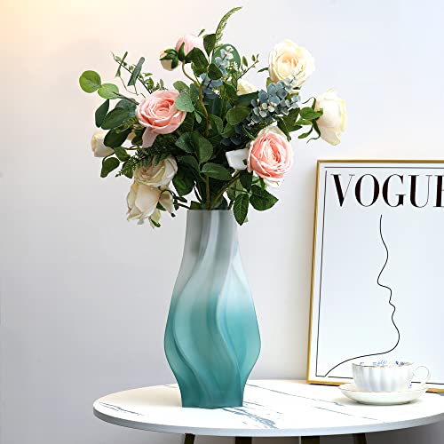 Joeyan 32.5cm Vaso Fiori Verde Sfumato, Vasi in Vetro Stile Ondulati per rose Pampa Erba, Vaso Decorativo per Casa Matrimonio Decorazione