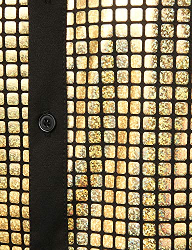 JOGAL Abito da uomo camicia paillettes bottoni giù camicie manica lunga anni '70 discoteca partito costume, Laser Gold, XL
