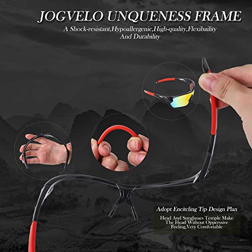JOGVELO Occhiali da Ciclismo, Occhiali da Sole Polarizzati per Sport con 5 Lenti Intercambiabili Anti-Fog Anti-UV 400 per Ciclismo Motoclclismo, Guida, Pesca,Corsa (Nero & Rosso)