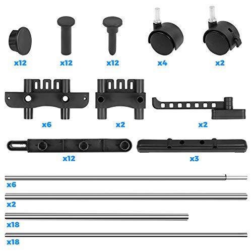6 rotelle girevoli a 360 ° scorrevoli, tutte le ruote con funzione di freno. 2 ali laterali per almeno 14 grucce per appendere camicie ecc.