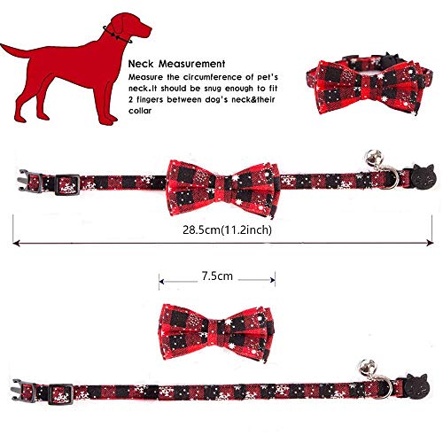 Johiux, collare natalizio per gatti, con papillon rimovibile, motivo a quadretti, durevole, regolabile e confortevole, per cani di piccola taglia e gatti