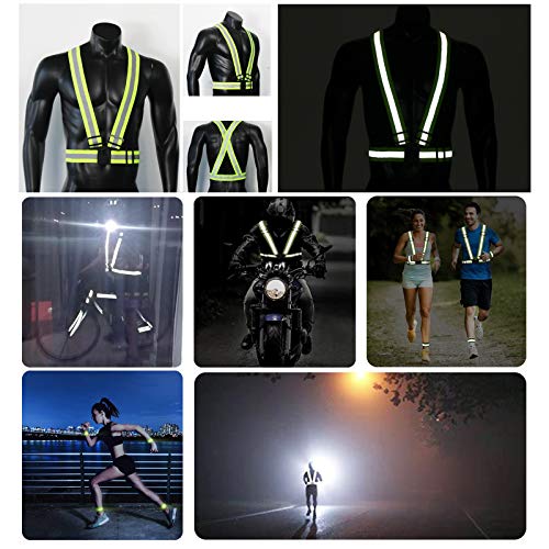Johiux 1 Giubbotto Catarifrangente, 4 Pezzi Catarifrangente Bracciale, 1 Cintura Luminosa, Gilet Riflettente ad Alta visibilità Regolabile per Tutti Sportive All'aperto per Notturna.