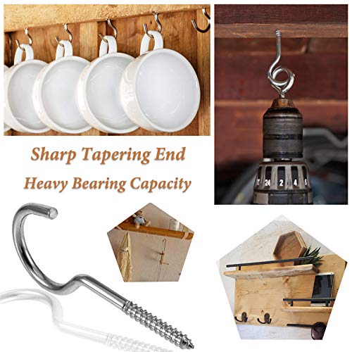 Johiux 30 Pezzi(10 * 3 Taglie) Ganci a Soffitto, Ganci a Vite per soffitti con ganci della tazza Acciaio Inossidabile Vite Ganci. (30, 40/50/65mm)