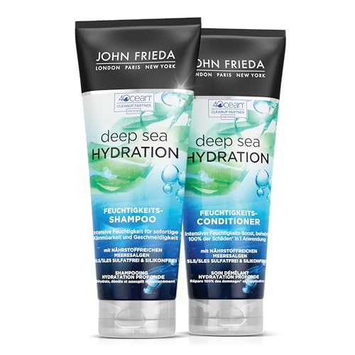 John Frieda Deep Sea Hydration Set - Shampoo, 250 ml e balsamo, 250 ml - Tipo di capelli: idratanti, asciutti, senza solfati SLS/SLES - Con alghe marine ricche di sostanze nutritive