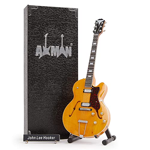 John Lee Hooker - replica di chitarra in miniatura - regali musicali, fatto a mano ornamentale scala 1/4, include una scatola espositiva, targhetta con nome e supporto per chitarra in miniatura