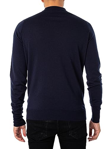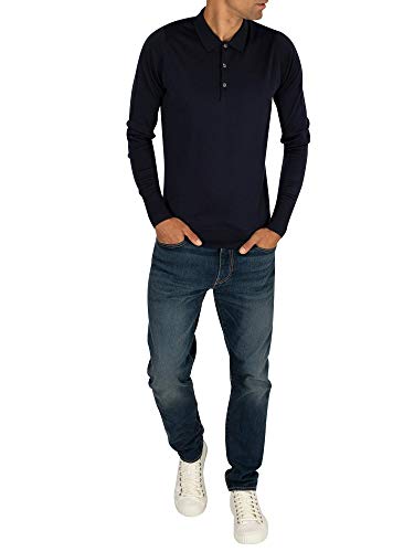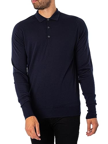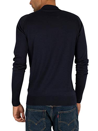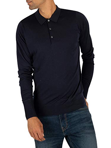John Smedley Uomo Shirt maniche lunghe lavorato a maglia Polo, Blu, Large
