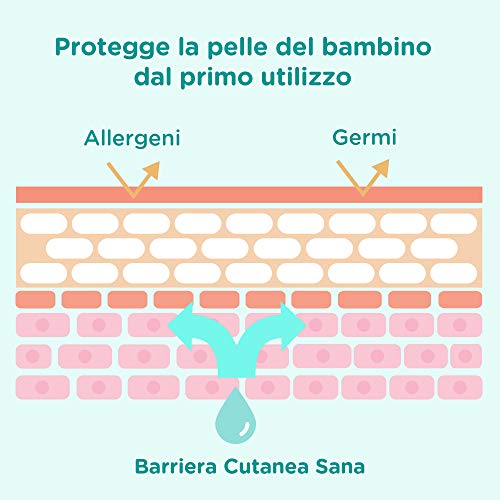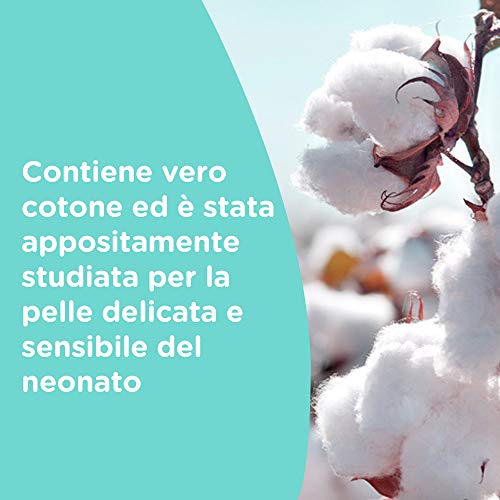 A base d'acqua e con vero cotone, idrata e protegge la pelle delicata del neonato dal primo giorno (protegge dalla secchezza)