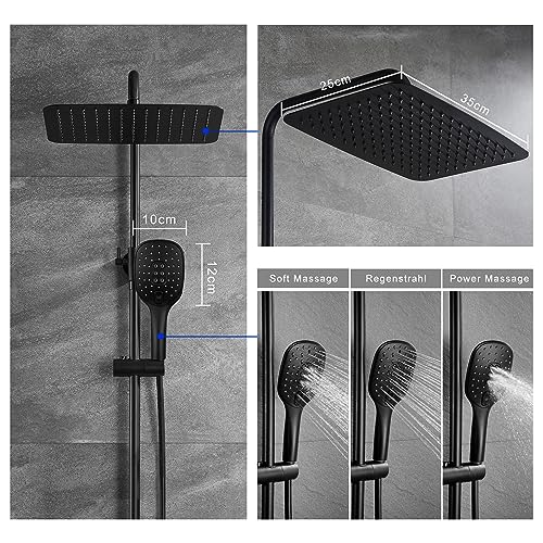 JOHO Colonna Doccia idromassaggio Doccia Soffione Colonna Doccia Nero Opaco in Acciaio Inox 304 Colonna Doccia Senza Miscelatore Set Doccia a Pioggia con Doccetta e Soffione 35 * 25CM