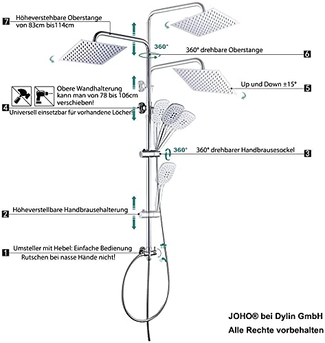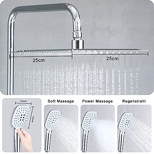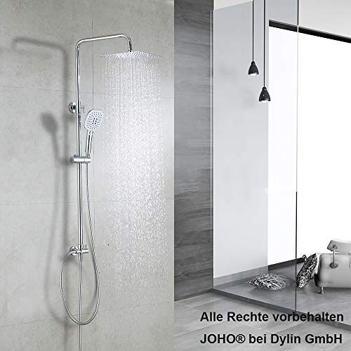 JOHO Colonna Doccia Senza Miscelatore in Acciaio Inox 304 Cromo Set Doccia a Pioggia con Soffione e Doccetta a Mano (25×25cm quadrato)