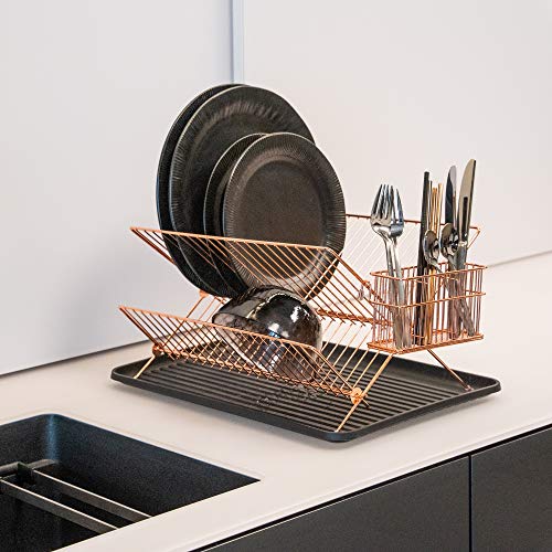 Il nostro pratico e moderno scolapiatti da appoggio oro rosa è pieghevole, e ti aiuta ad asciugare i tuoi piatti e stoviglie aggiungendo un tocco di stile alla tua cucina