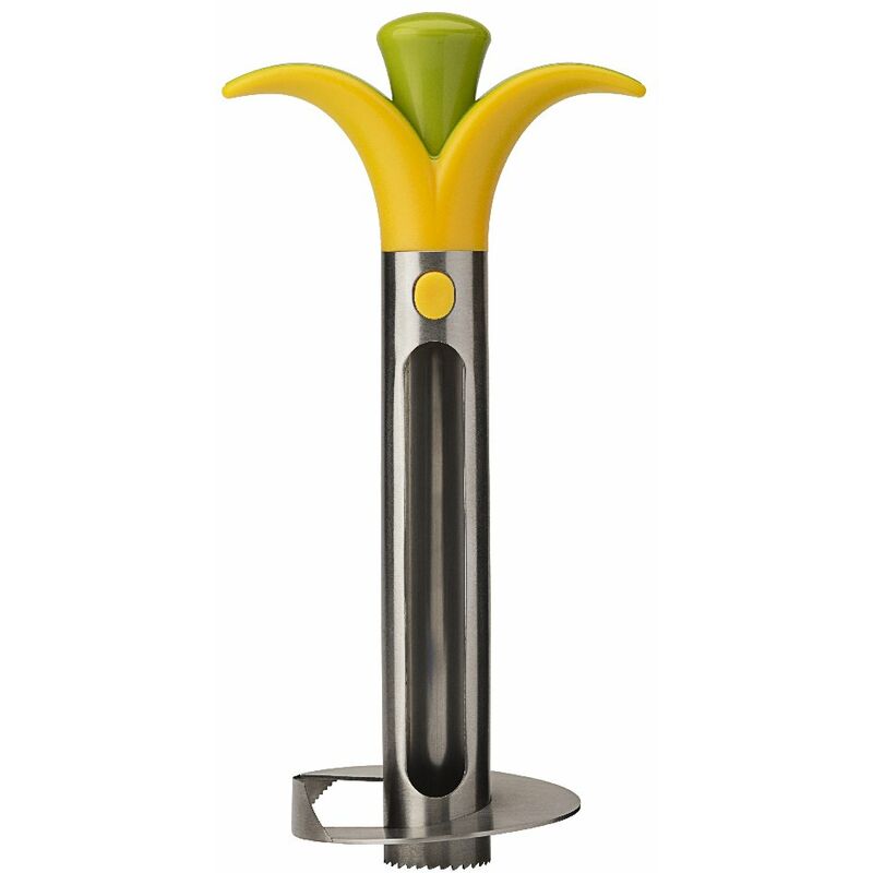 Scarica l' ananas facilmente e corta la polpa in perfette affettare Lascia la pelle invariata Elimina il cuore di la ananas Genial per svuotare la polpa dell' ananas. Estrae tutta la polpa in arance, senza corteza né cuore. La corteza può essere utilizzata per servire la frutta tagliata, gustoso, ecc. Senza BPA. Non adatto per lavastoviglie. Questo non è un giocattolo. Tenere lontano da bambini e animali domestici.
