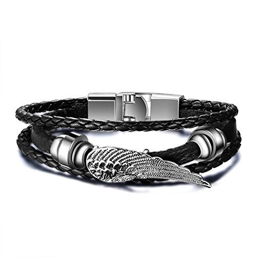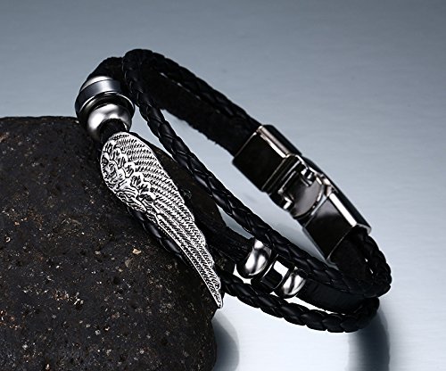 Joielavie, bracciale in pelle intrecciata e corda, con fibbia e un'ala di piume in lega, idea regalo per uomini