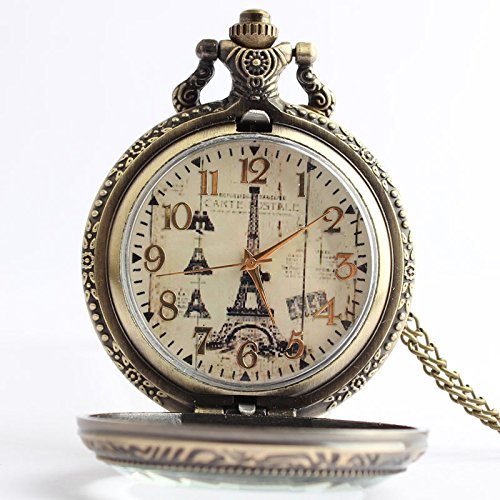 Joielavie - Orologio da tasca a forma di torre Eiffel con numeri arabi e fiori incisi, movimento al quarzo, stile vintage, in lega, regalo per uomini e donne