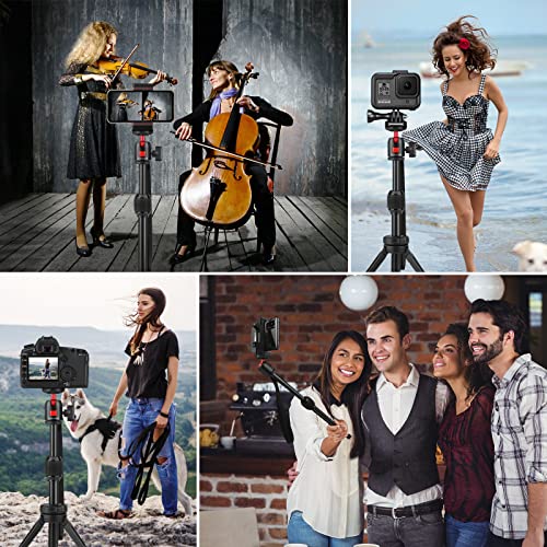 【Compatibilità Universale】 Dotato di viti standard da 1/4", il treppiedi cellulare è ampiamente compatibile con la maggior parte delle fotocamere compatte, mini proiettori e webcam. Una clip per telefono universale inclusa nella confezione, compatibile con tutti i telefoni come iPhone 12/11/11 pro/ 11 pro max/xs/xs max/8, Samsung, Huawe
