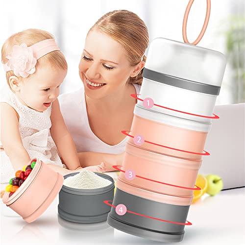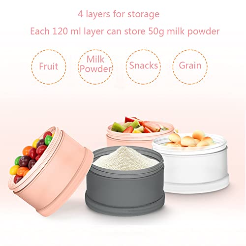 JOIOBO Dispenser per latte in polvere, 4 strati, 480 ml, contenitore portatile per snack, senza BPA, per alimenti, latte in polvere, per viaggi ed esterni, colore: rosa