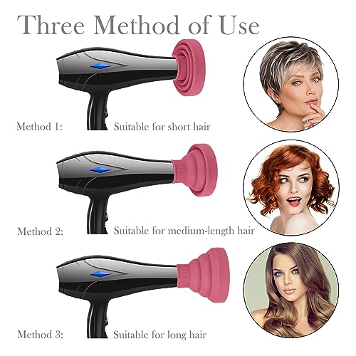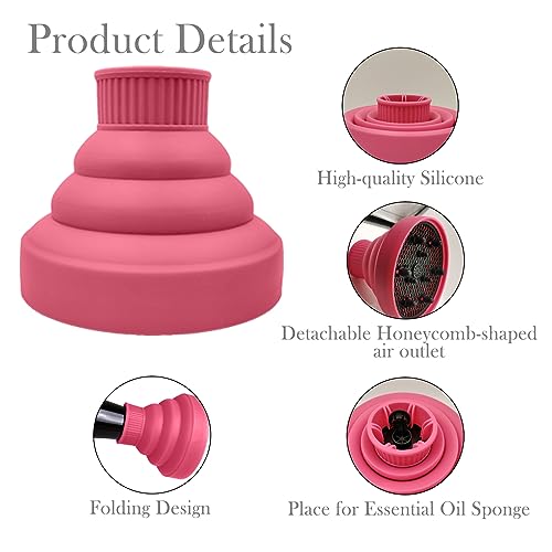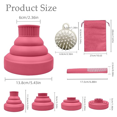 JOIYHY Diffusore Capelli Ricci Universale in Silicone, Adattabile a Asciugacapelli con Diametro 4-5cm, Diffusore Pieghevole Capelli Ricci, Viene Fornito con Borsa, Spazzola per Shampoo e Pettine(Rosa)