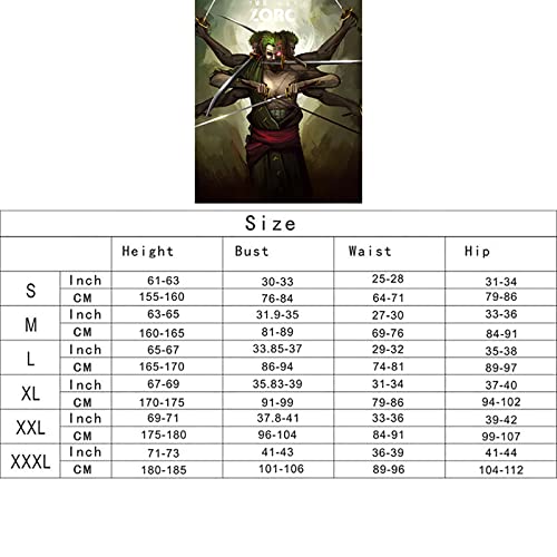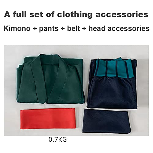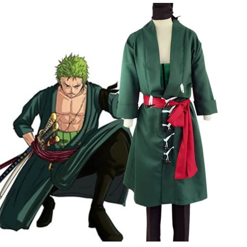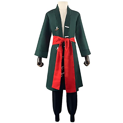 JOJO STYLE Costume Cosplay One Piece Roronoa Zoro Anime Costume per Adulti Costume Cosplay Impostato Kimono + Pantaloni + Cintura + Accessori per La Testa,Verde,M