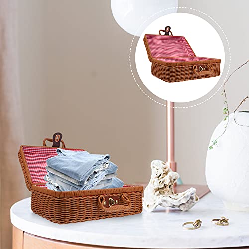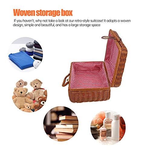 Jojofuny Mobili in Rattan di Vimini Valigia Cesto di Vimini da Picnic Scatola di Immagazzinaggio di Paglia con Manici Scatola di Immagazzinaggio del Rattan Valigia di Corsa di Vimini Bin