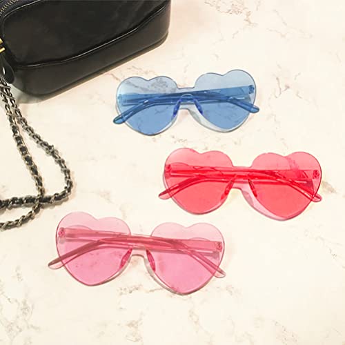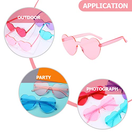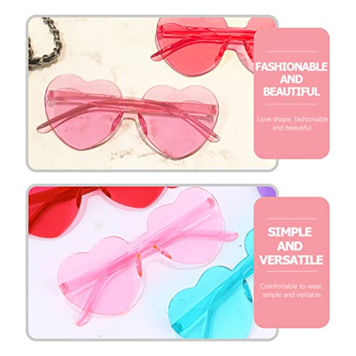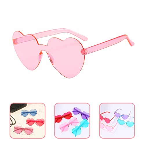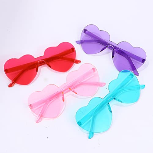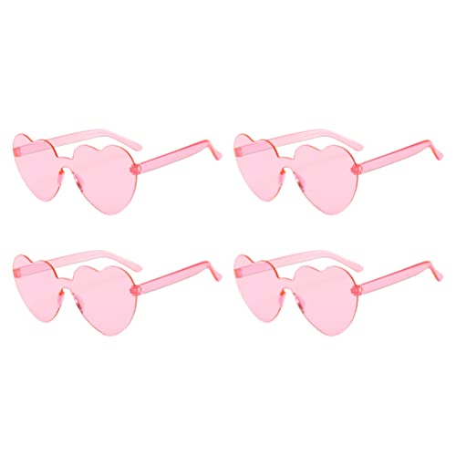 Jojofuny Occhiali da sole a forma di cuore, 4 pezzi, senza cornice, a forma di cuore, occhiali da sole senza bordi, trasparenti, color caramella, senza cornice, per la preferenza di feste, rosa cuore