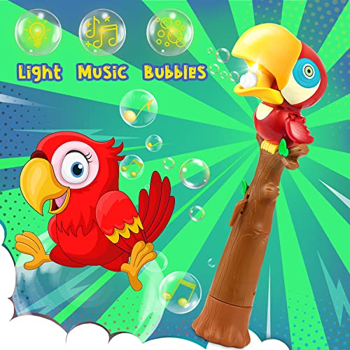 Jojoin Macchina per Bolle per Bambini, Bubble Maker con Musica e Luce, Design di Pappagallo e Ramo con Soluzione di Bolle, Giochi Giardino Esterno Matrimonio Piscina, Regali per Bambini dai 3+