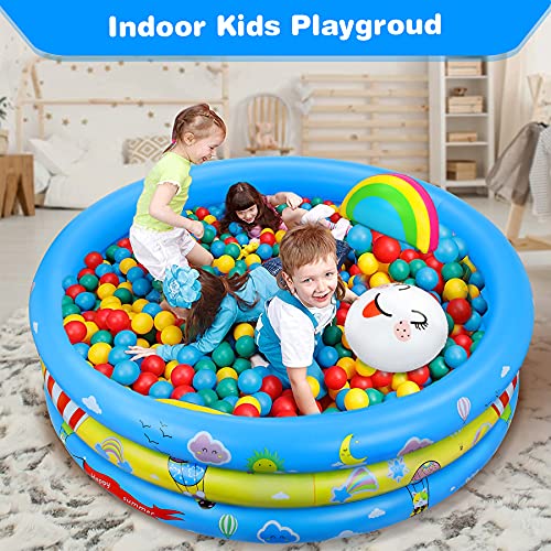 Jojoin Piscina Bambini,120CM*30CM Piscina Gonfiabile Con Cuscini Arcobaleno e Smiley e Motivi Colorat Piscine Gonfiabili per Bambini Dentro fuori