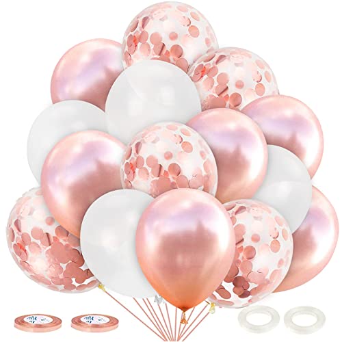 ★ 64 pezzi oro rosa coriandoli palloncini set, 30 oro rosa, 20 bianchi, 10 coriandoli oro rosa,4 nastro a palloncino.
