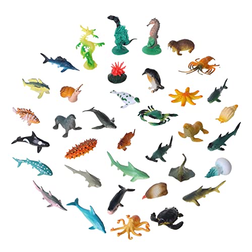 JOKFEICE Set di 36 figurine di animali marini realistici in plastica include balena blu, delfino ecc. progetto scientifico, apprendimento giocattoli educativi, regalo di compleanno
