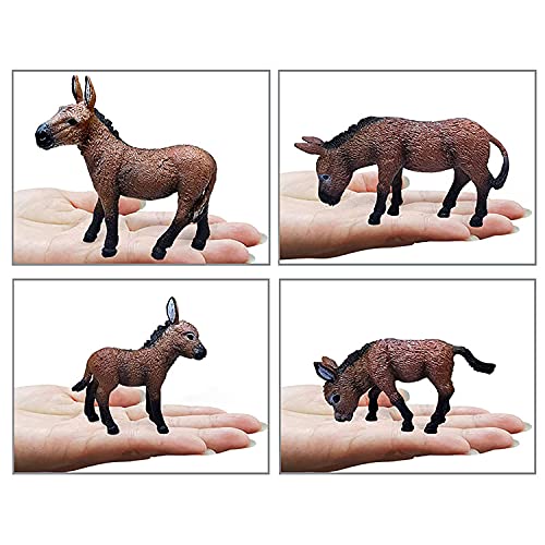 Jokfeice - 4 statuette di animali in plastica marrone asino famiglia animali modello di azione scientifico, apprendimento giocattoli educativi, regalo di compleanno, decorazione per torta, per bambini