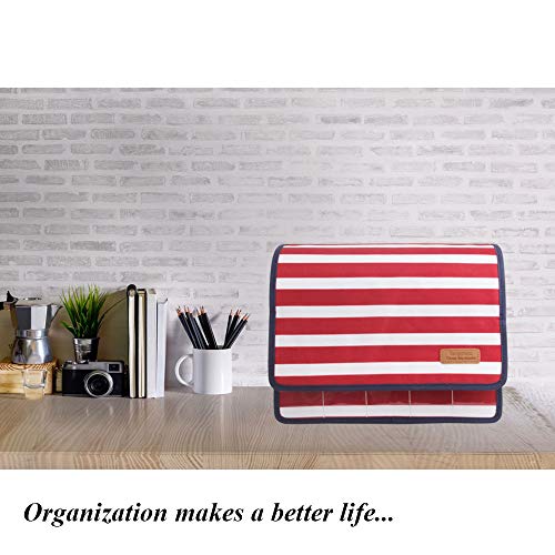 Jolicobo Cartella File Espandibile Archiviazione File Organizer in Oxford 13 Tasche A4 Classificatori Portadocumenti con Coperchio (Bianco-Rosso)