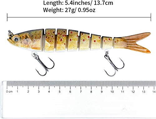 Jolicobo Esche Artificiali Esche da Pesca Realistico Kit 3Pcs 13.7cm 27g Spinning Esca 8 Sezioni Congiunte Finta Esche Swimbait Lure di Pesca L'esca Dura Tackle della Pesca con 2 Ganci
