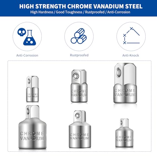 【Materiali di Alta Qualità】Set di adattatori è realizzato in acciaio al cromo vanadio, elevata durezza, forte ruggine e resistenza alla corrosione, non facile da deformare o rompere e durevole, ti offre un'esperienza e una sensazione di utilizzo molto buone.