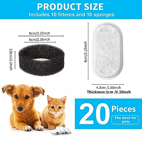 【Ampia Compatibilità】Il nostro Filtri di Ricambio compatibile con fontanella per gatti da 2L/3,2L e altri della stessa dimensione. La dimensione del filtro di ricambio è 7,6 * 4,3 cm. Il diametro interno della spugna è di 6 cm, si prega di misurare le dimensioni dell'alloggiamento del filtro prima di ordinare. La confezione include 10 filtri per fontana per gatti e 10 filtri tondi in schiuma nera.