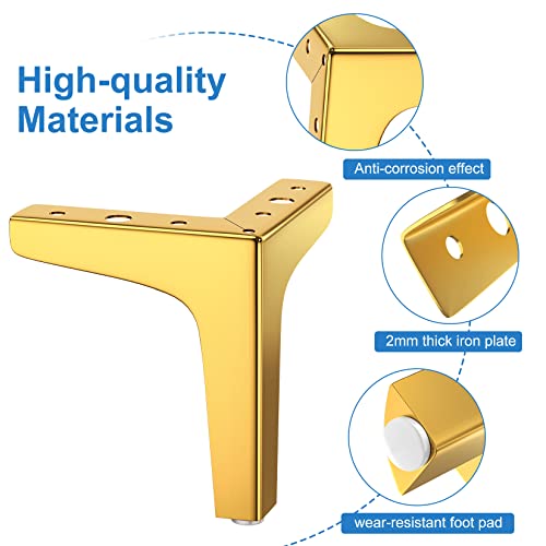 JOLIGAEA 4 Pcs Gambe per mobili da 15 cm, Gambe per Divani, Carica fino an 800 KG, Moderni piedini triangolari in metallo per mobili fai da te di ricambio per armadietti, divani, poltrone, oro