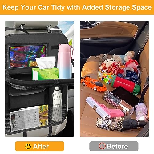 Facile da Installare: Le protezioni per sedile auto misurano 58x42cm, per una maggiore protezione dei tuoi sedili, L'installazione è semplice, Il porta oggetti per auto con cinghie regolabili si adatta facilmente a quasi tutti i sedili posteriori dell'auto.