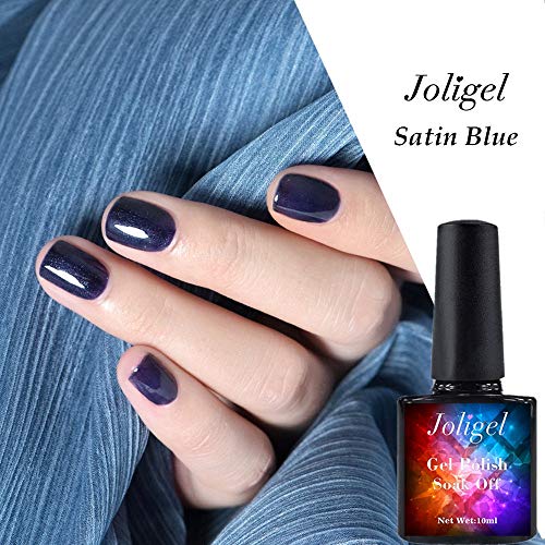 Joligel Smalto per unghie con gel UV LED Manicure Semipermanente, blu satinato (con lucentezza extra fine argentata)