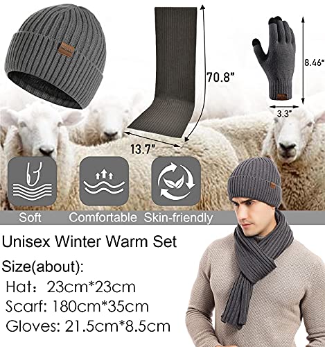 Joligiao Cappello Sciarpa e Guanti Invernale Donna Set Beanie Berretto in Maglia Scaldacollo Uomo Sciarpa Lunga Guanti Touch Screen Invernali Caldo per Sport all'aperto Sci (grigio,Taglia unica)