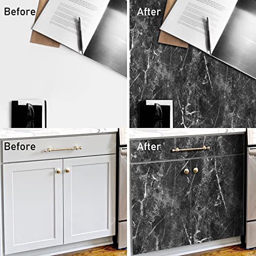 【CARATTERISTICHE】La texture in marmo della carta da parati nera buccia e stick è reale e naturale, ha un forte potere coprente, superficie liscia, impermeabile e resistente all'olio, facile da applicare, autoadesiva, non richiede colla extra e più resistente della tradizionale carta di marmo non lo fa dissolvenza.