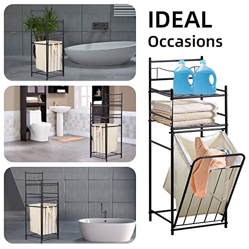 JoliJour Cesta Portabiancheria con 2 Ripiani,Portabiancheria Portabiancheria Con Sacco Rimovibile,Portabiancheria da 65L,Cesto per la Biancheria Inclinabile,per il Bagno Laundry Room&Camera da letto