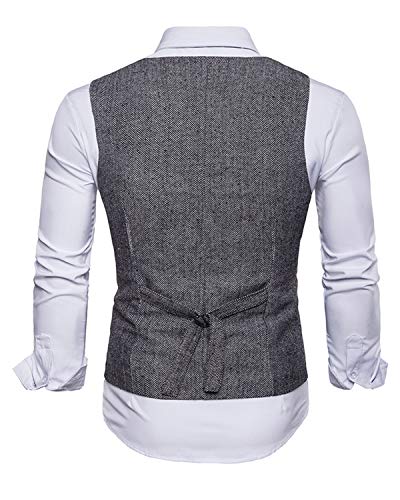 JOLIME Panciotto Gilet Uomo Tweed Vintage Slim Fit Giacca Blazer Smanicato Casual Cerimonia Matrimonio Grigio S