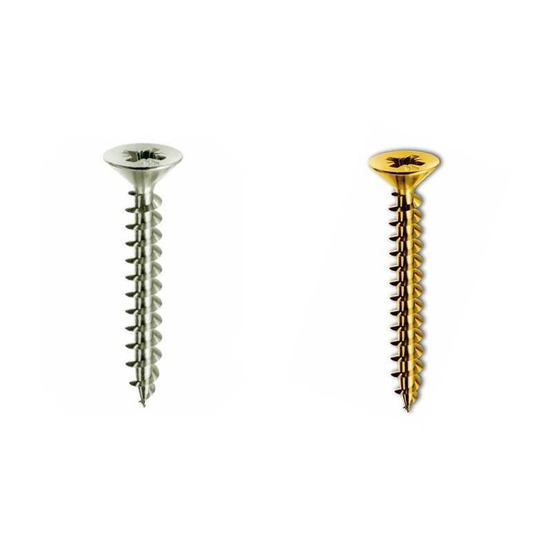 Viti Per Legno 4 x 25 mm Zincate e Ottonate Testa Svasata 500 Pz Queste viti sono offerte in due finiture distintive: zincate e ottonate, fornendo opzioni estetiche e funzionali per adattarsi alle esigenze del tuo progetto. Con un diametro del gambo di 4 mm e una lunghezza di 25 mm, queste viti offrono un equilibrio ideale tra robustezza e versatilità. La testa svasata consente un fissaggio a filo della superficie, garantendo un aspetto pulito e professionale.