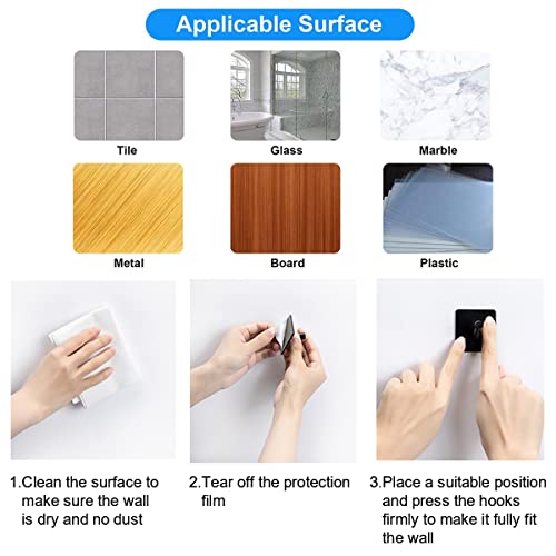 Facile da usare: il gancio è fissato con un robusto cuscinetto adesivo 3M, che può essere installato facilmente e rapidamente senza forare. Basta strappare lo strato protettivo sul retro e incollarlo nella posizione desiderata.