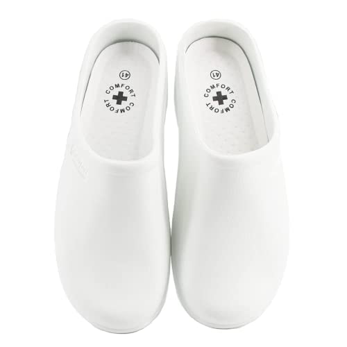 JOMIX Zoccoli Sanitari Uomo Ciabatte Sanitarie Uomo Gomma Calzature Infermieri Ortopediche Ospedale Cucina Giardino SU4099 (Bianco, 40)