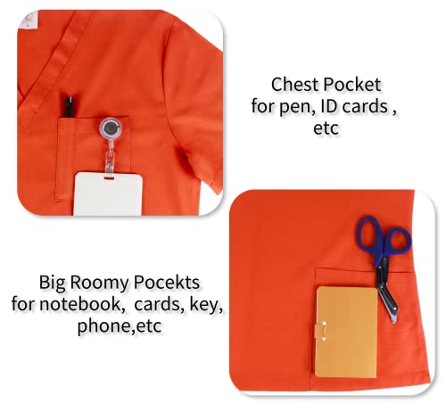 JONATHAN UNIFORM Camice Medico Donna 3 Tasche Casacca Sanitaria Manica Corta Scollo V, Divisa OSS per Infermiere Dentista Clinica Dentale (Arancione, S)