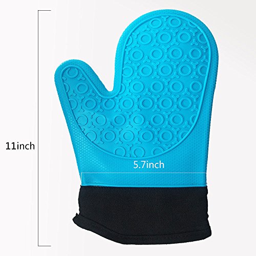 Jonhen, guanti da forno in silicone, resistenti al calore, antiscivolo con fodera in cotone, 1 paio, include un pennello da cucina e 2 presine in silicone (blu)