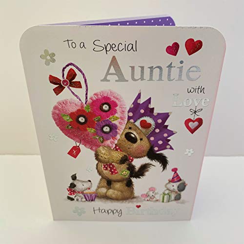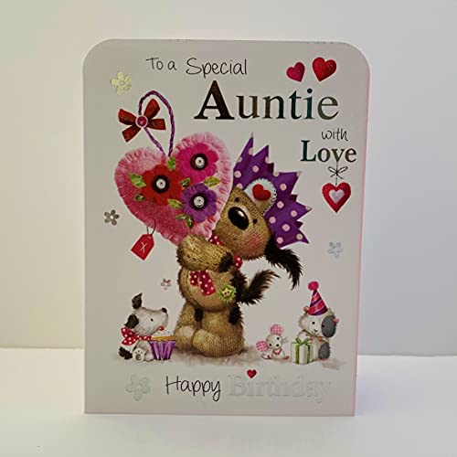 Per una zia speciale con amore felice compleanno scheda con simpatico cane e cuore design