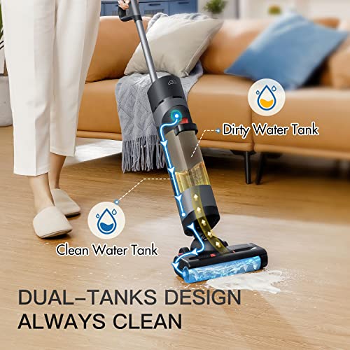 Pulisci Tutta la Casa in Una Volta: Tecnologia di rilevamento intelligente, ottimizza automaticamente l'aspirazione, l'autonomia fino a 35 minuti. Il sistema di doppio serbatoio mantiene separata l'acqua pulita e l'acqua sporca, può pulizia con acqua pulita continua.