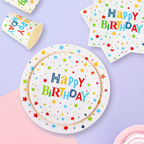 Jonvell 96 Pezzi Stoviglie per Feste di Compleanno Bambini 24 Ospiti Piatti Carta Colorati Arcobaleno Bicchieri e Tovaglioli