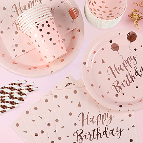 Jonvell Stoviglie per Feste di Compleanno 16 Ospiti Piatti di Carta Rosa Cannucce Tovaglioli Tovaglia Bicchieri Piatti Carta Festa Compleanno