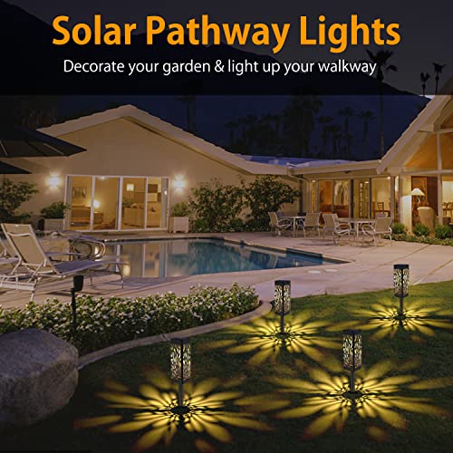 【Design accattivante】 Appositamente progettate per la decorazione, le luci del percorso solare potrebbero non essere abbastanza luminose, ma queste luci bianche calde sono ottimi ornamenti per esterni per il tuo giardino. Il paralume cavo offre uno speciale e vivido motivo delizioso, creando un ambiente confortevole e accogliente. Aggiungi un incantevole bagliore decorativo ai tuoi percorsi, decora il tuo giardino, veranda, cortile, prato o patio.